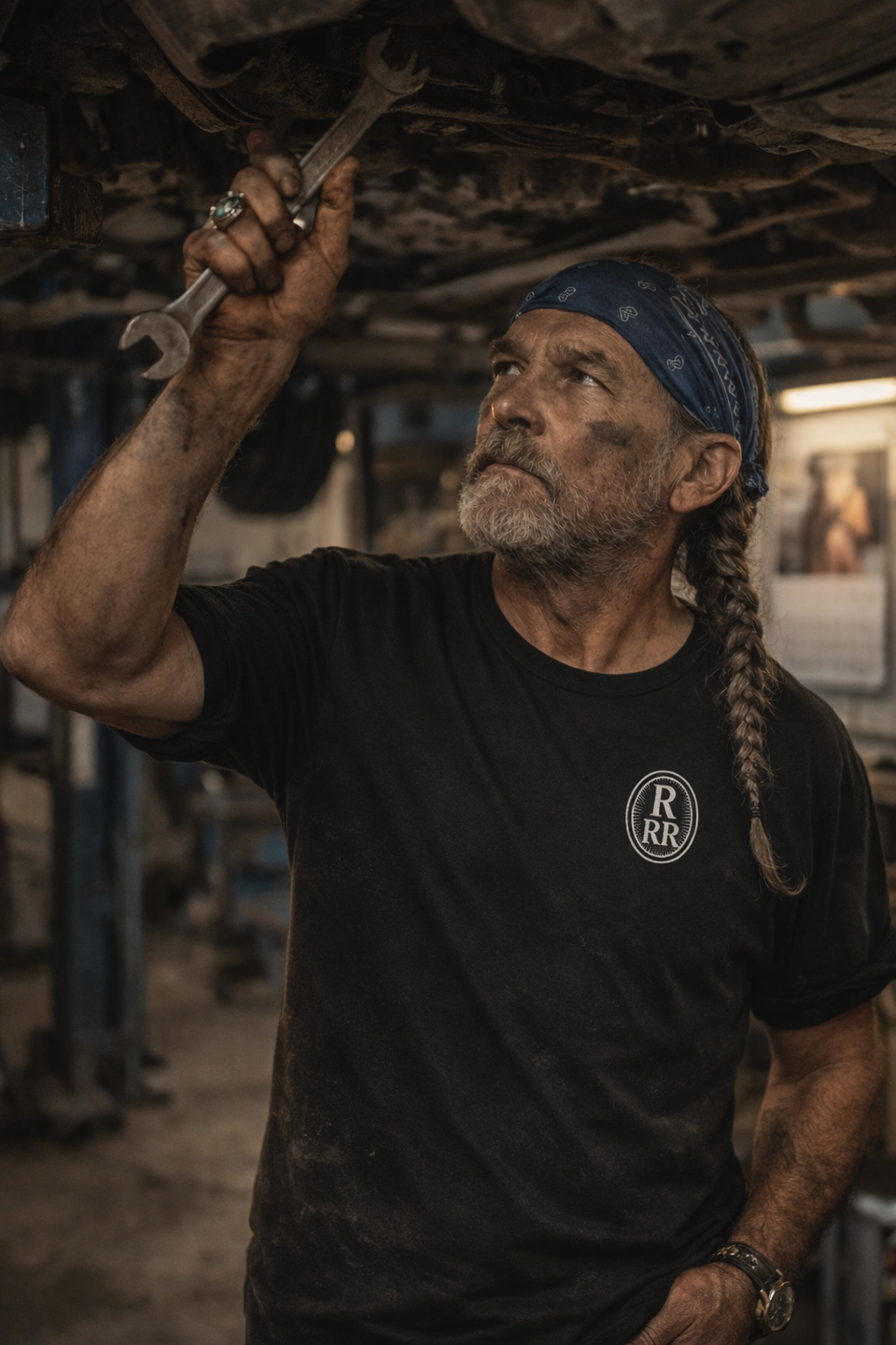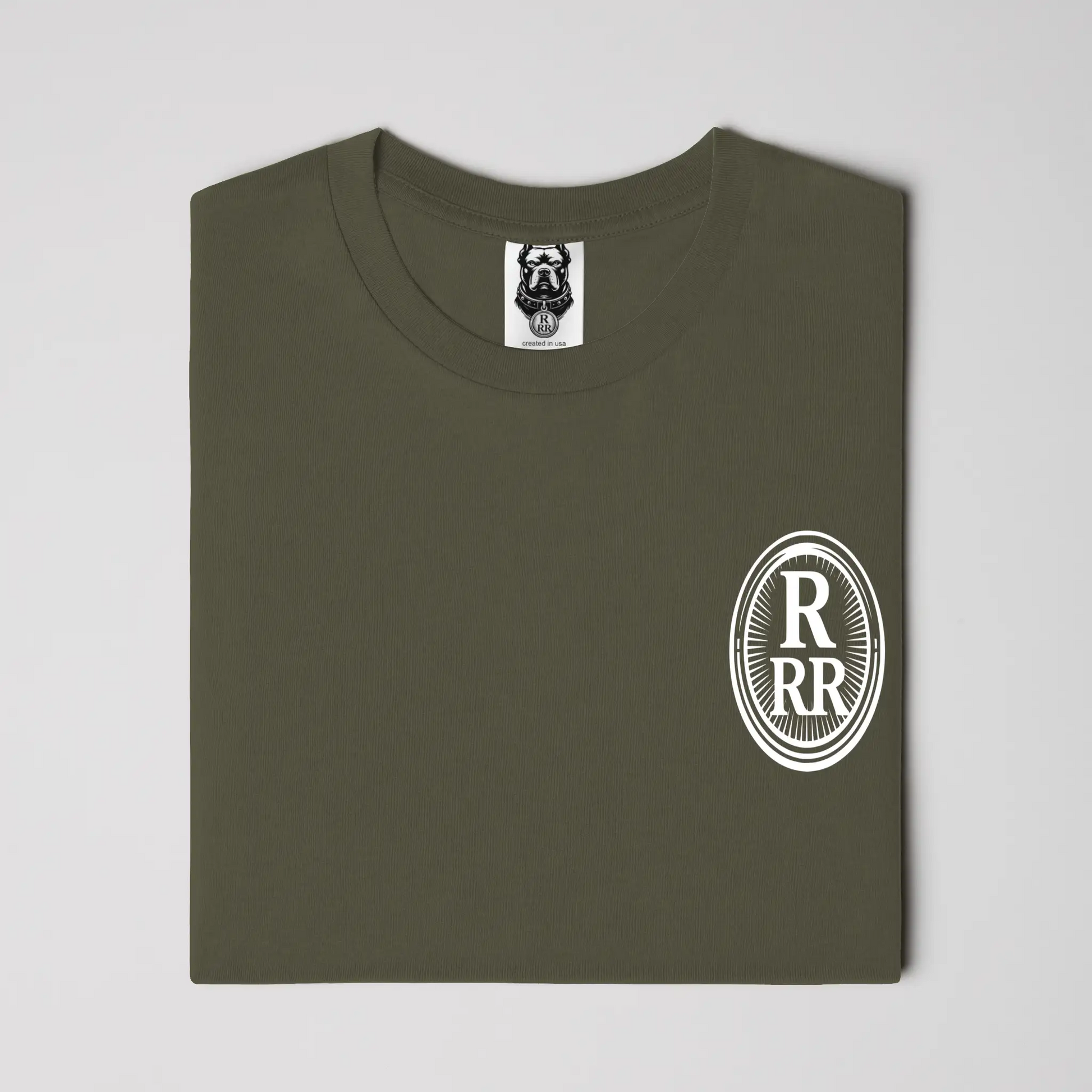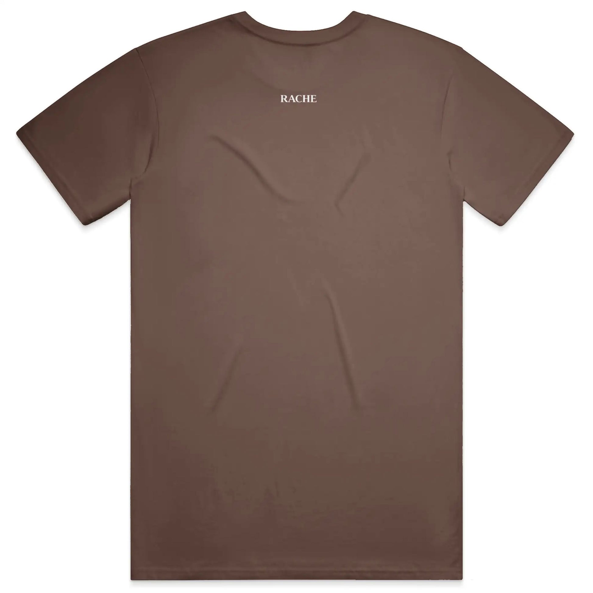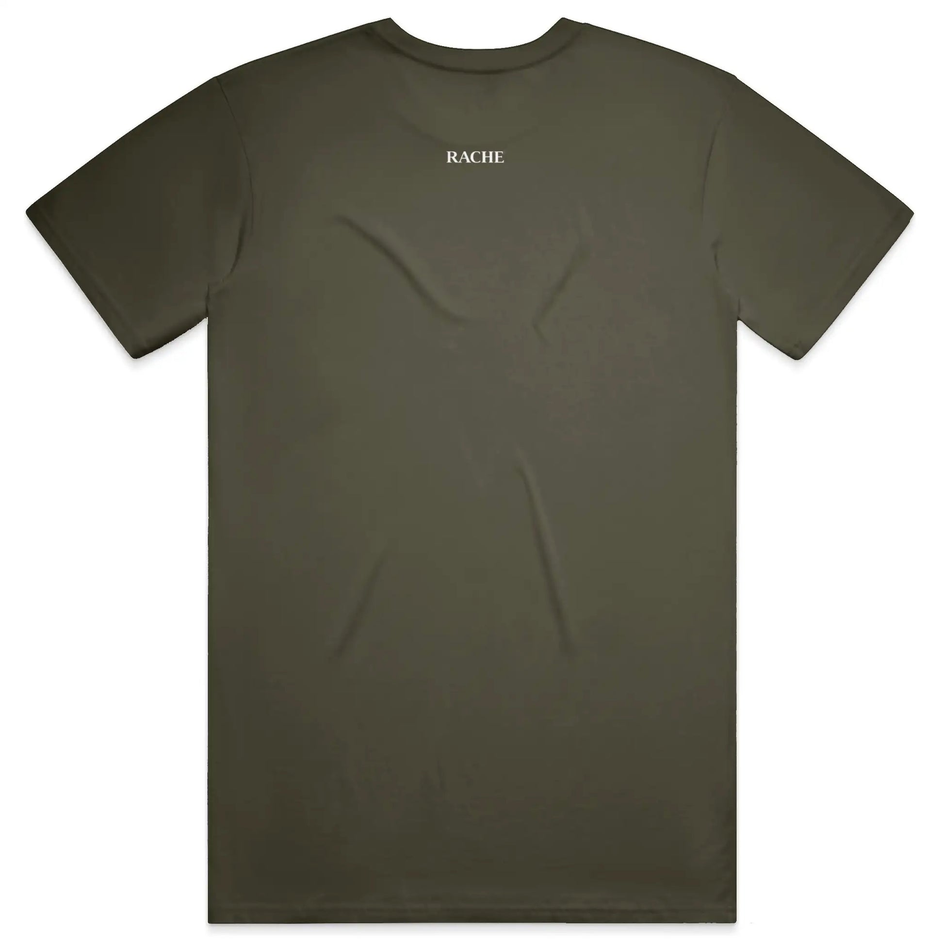 Finished with the white RRR medallion logo on the chest and RACHE wording logo below the back collar, this tee is balanced, intentional, and unmistakable.